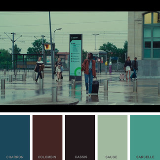 Pour sublimer la couleur dominante du film, l’équipe s’est appuyée ensuite sur une palette de complémentaires nuancée. Puisque le brun ne figure pas directement sur le cercle chromatique c’est de sa nuance orange que l'on trouvera la couleur complémentaire pour créer un contraste saisissant et harmonieux.
